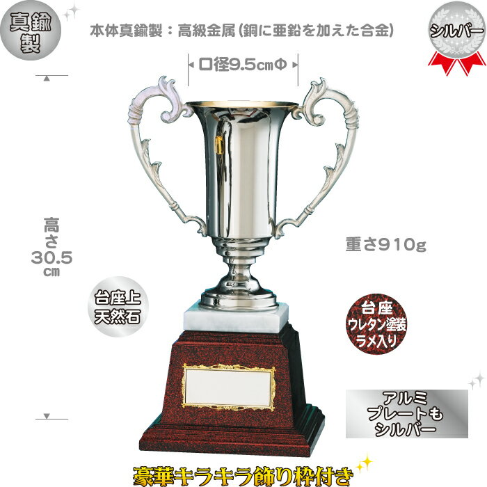 商品説明 真鍮:高級金属(銅に亜鉛を加えた合金)の優勝カップ(シルバー)、天然石、ウレタン塗装ラメ入りの台座で高級感たっぷり! 文字彫刻名入れ 文字彫刻代は無料です。