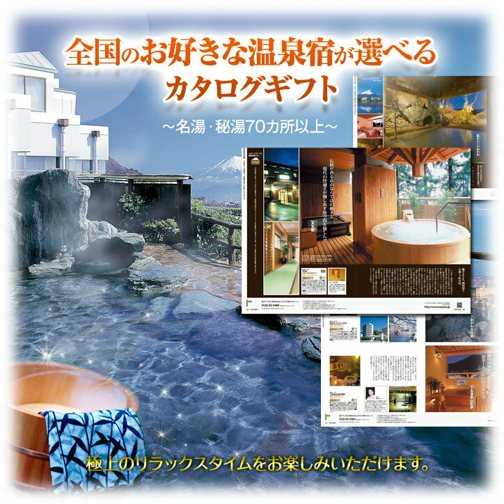 特大A3パネル付き目録 選べる全国有名温泉 1泊2食付ペア宿泊プラン Part4の解説 1泊2食付2名様宿泊温泉プランが景品に! 全国各地の名湯(約70か所)からお好きな施設をお選びいただけます。