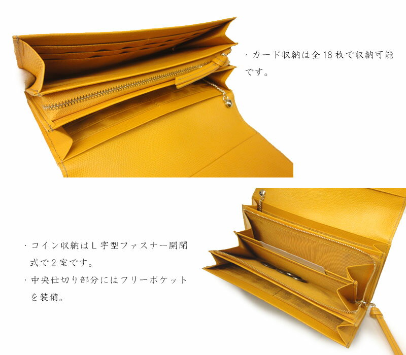 お問い合わせ番号 085-8706 商品名 NINA RICCI (ニナリッチ)かぶせタイプ 長財布 素材 牛革・PVC サイズ (約)W19.5cm×H10cm×D3.5cm 重量 − 生産国 中国 カラー イエロー(YEL)、スカイブルー(SBL)、ネイビー(NAV)、ボルドー(BDX)、ダークブラウン(DBR) 仕様 【内装】・札収納×2、 ・コイン収納×2(L字型ファスナー開閉式、・フリーポケット×1) ・カード収納×18、・フリーポケット×3 ・リングチェーン×1 【外装】・フリーポケット×1 付属品 − 注意事項 ・※入荷時期により、予告なく部品やパーツなど若干の仕様変更がある場合がございます。