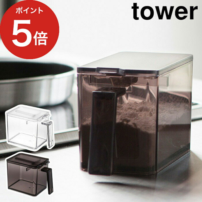 調味料ストッカー タワー tower L ホワイト ブラック 2869 2870 山崎実業 yamazaki 便利 砂糖 塩入れ 砂糖 塩 容器 調味料入れ 使いやすい おしゃれ スプーン付き 一人暮らし